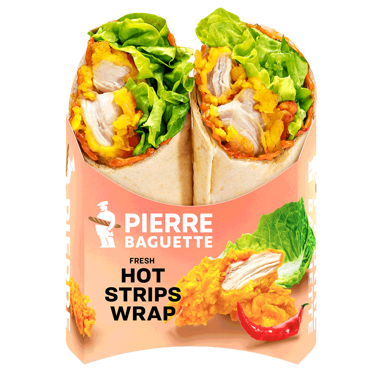 Saftige Hühnerbrust knusprig gebraten, Blattsalat und ein mild-würziges Chili Dressing, alles sorgfältig verpackt in einer Weizentortilla.